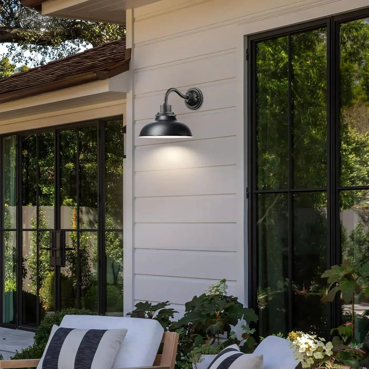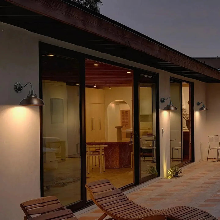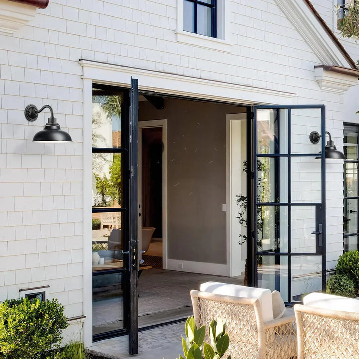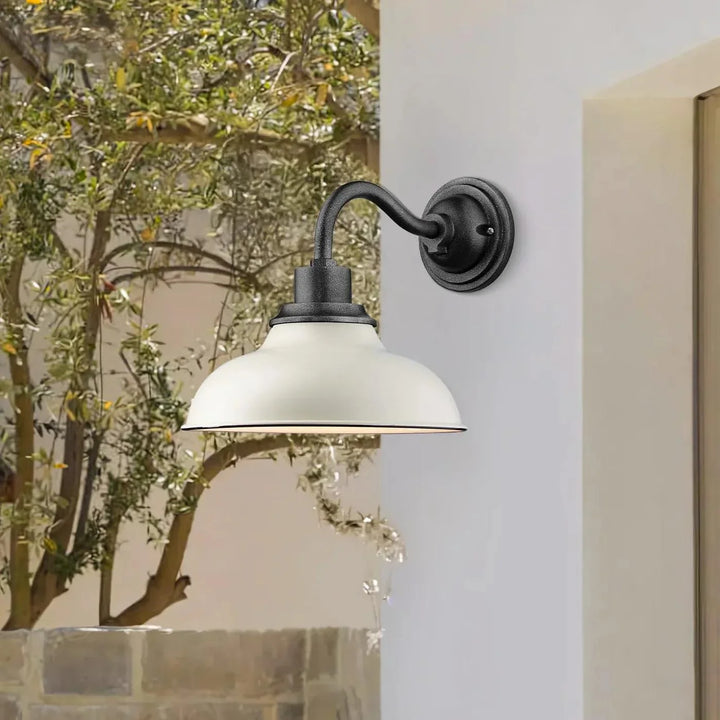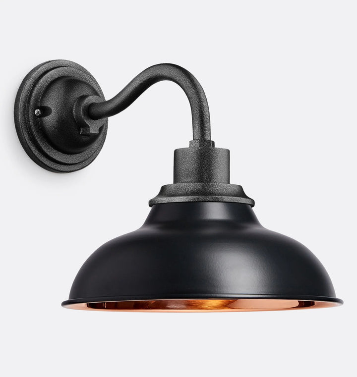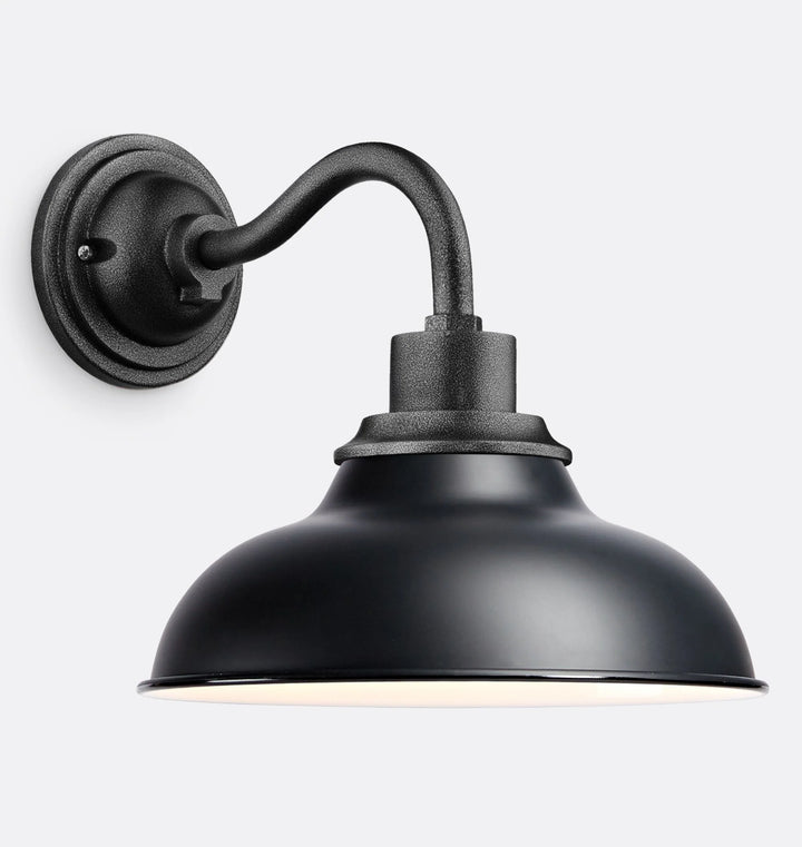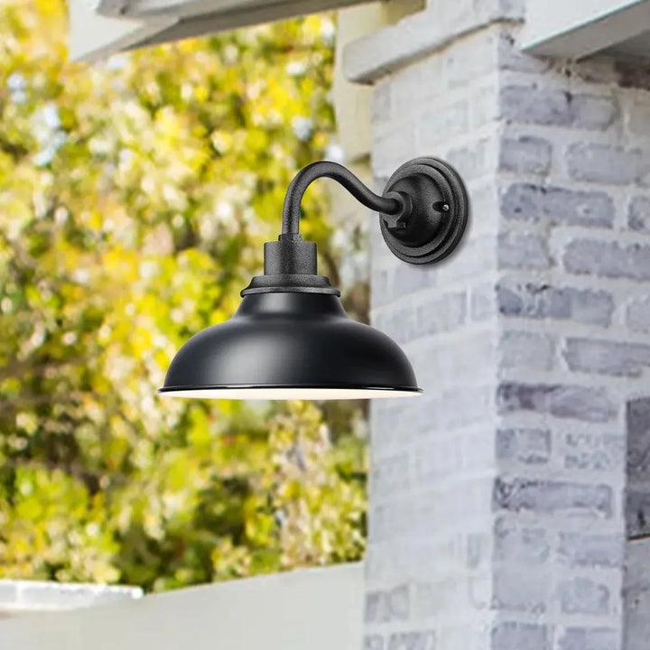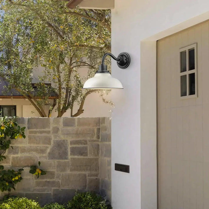 This wall lamp is simple yet sophisticated. Its round base provides a stable support for the entire lamp, and the curved lamp arm increases the three-dimensional sense of the lamp. The overall lines are smooth, and the retro finish can add a charming touch to front porches and outdoor patios.