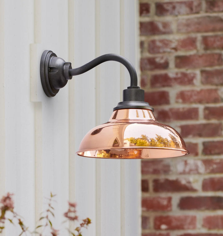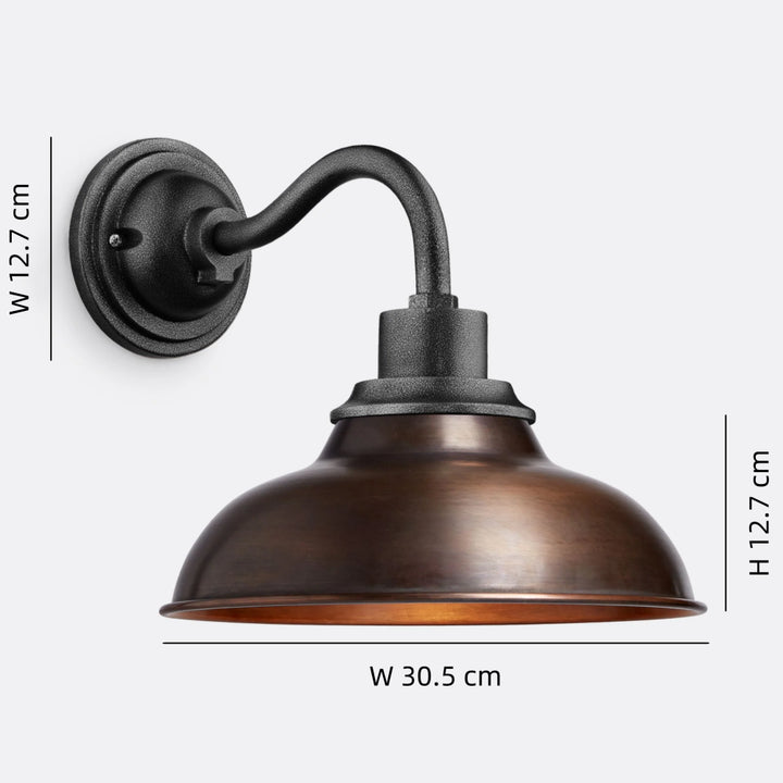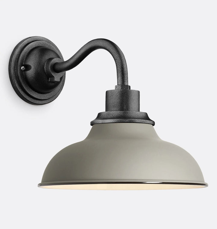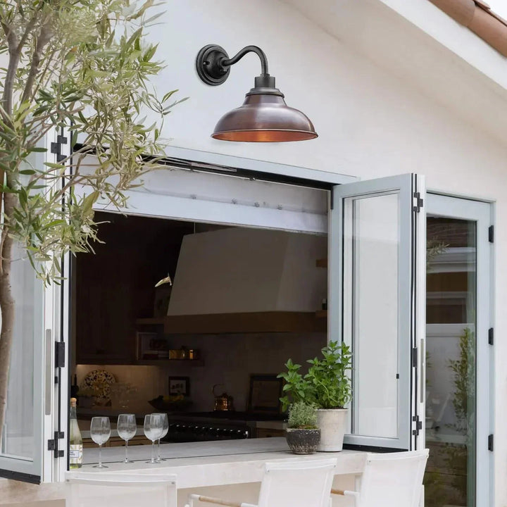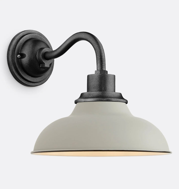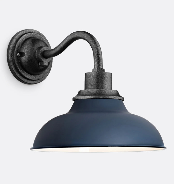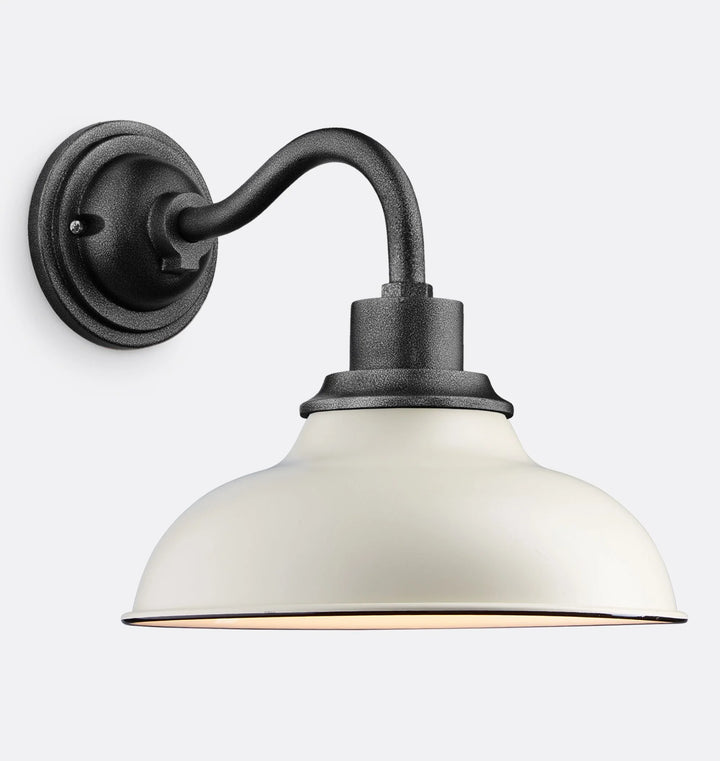 This wall lamp is simple yet sophisticated. Its round base provides a stable support for the entire lamp, and the curved lamp arm increases the three-dimensional sense of the lamp. The overall lines are smooth, and the retro finish can add a charming touch to front porches and outdoor patios.