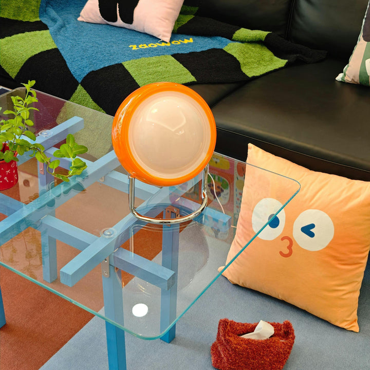 A striking pairs a vibrant glass dome with gracefully curved metal legs for a look that’s both modern and timeless. Suitable for bedrooms, sitting rooms and other spaces.