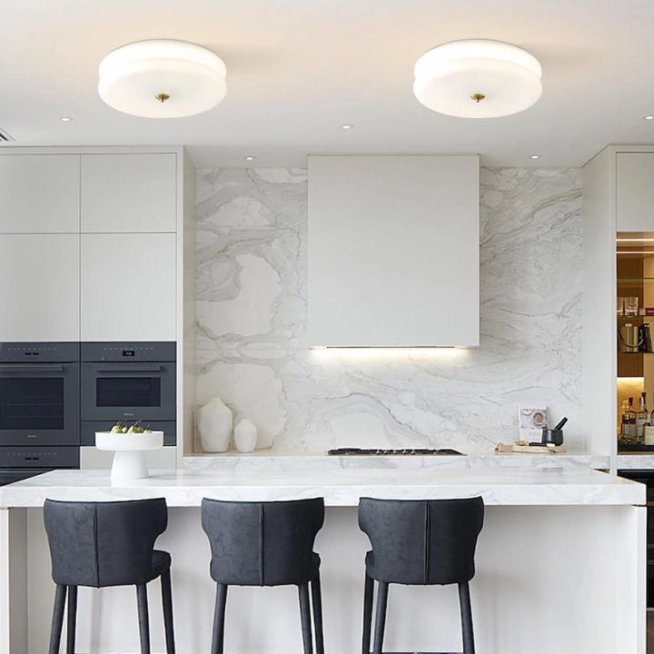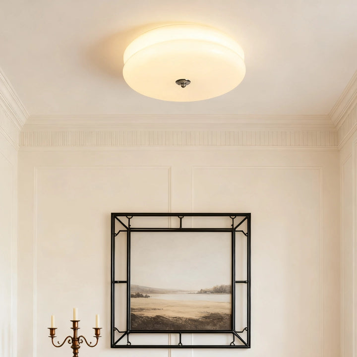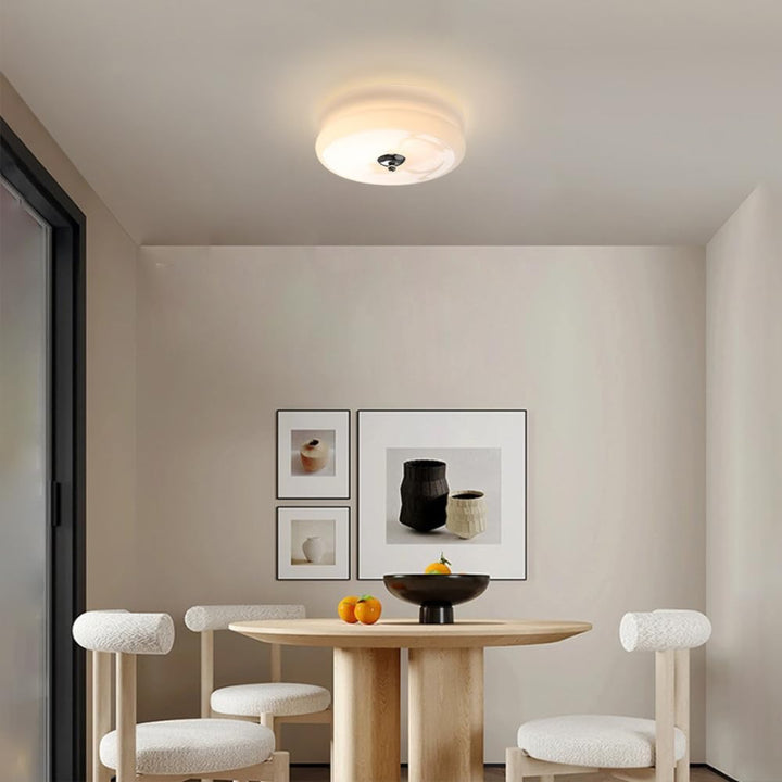 This ceiling lamp is crafted from high-quality glass. Its smooth curved shape not only exudes a sense of refinement, but also diffuses light evenly, enhancing the charm of living rooms, bedrooms, and dining rooms.