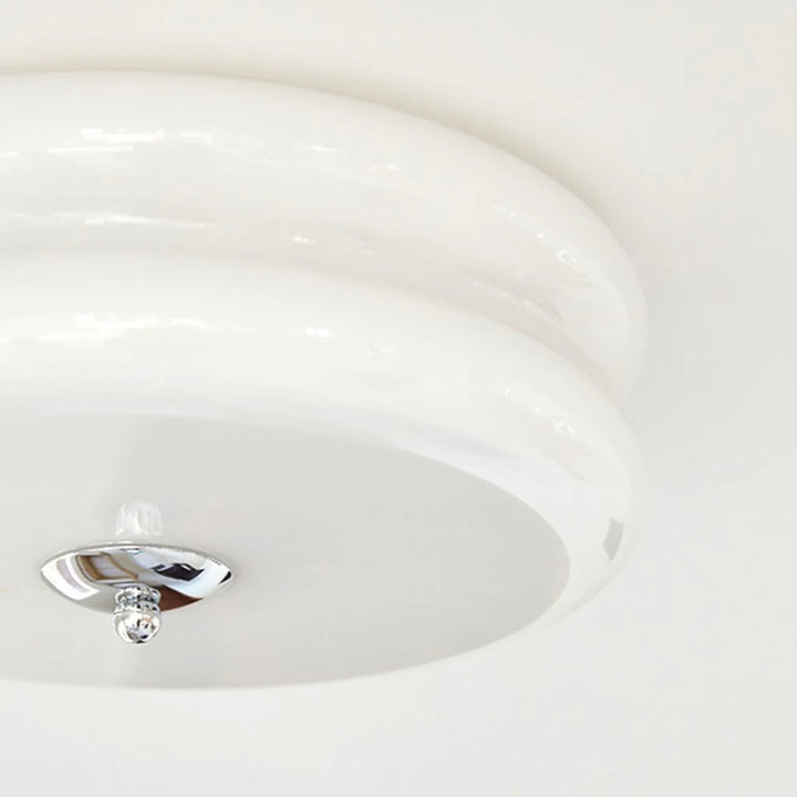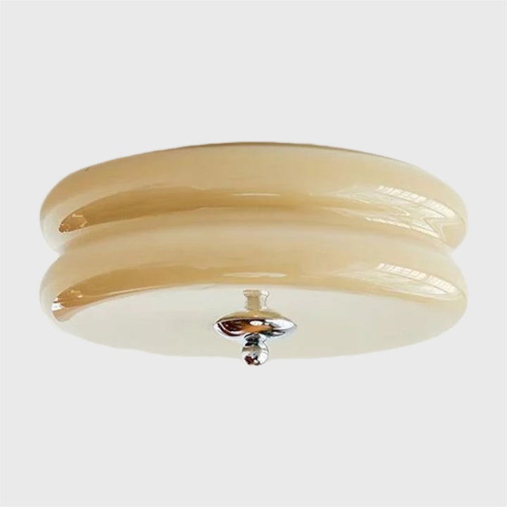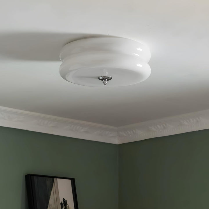Made of glass, this ceiling lamp's smooth curved shape exudes sophistication, enhancing the charm of living rooms, bedrooms, and dining rooms.