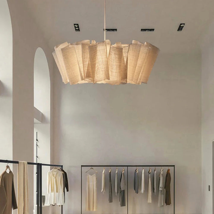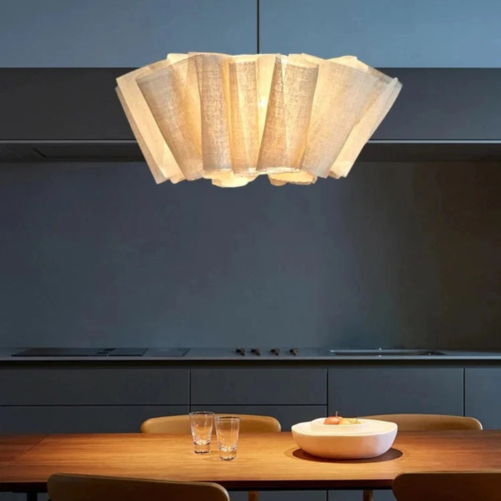 Nordic Pleated Linen Handmade Pendant Light features exquisite pleated linen, emitting soft, warm light. Perfect for dining rooms and bedrooms, it adds a cozy touch.