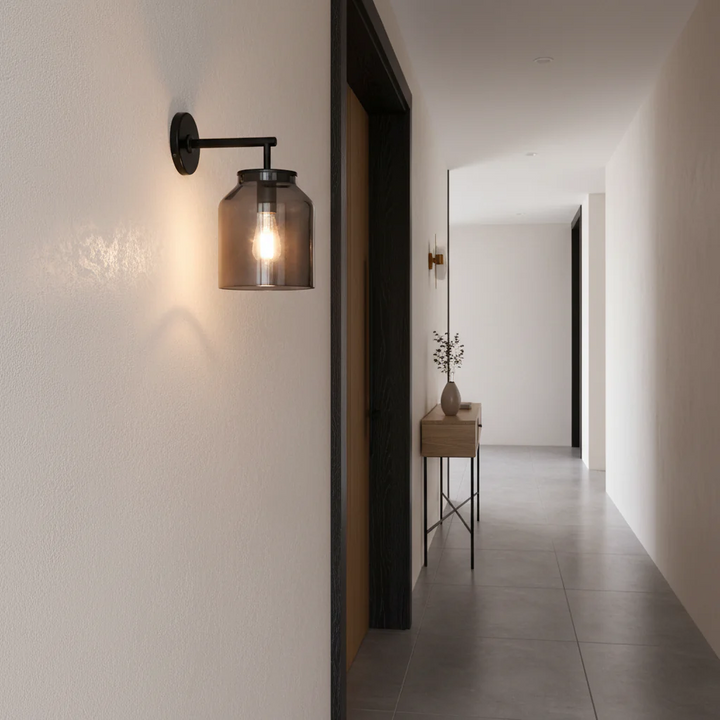 The sconce features a Morandi-toned metal body, subtle powder-coated finish and slim profile. Perfect for bedrooms or hallways.