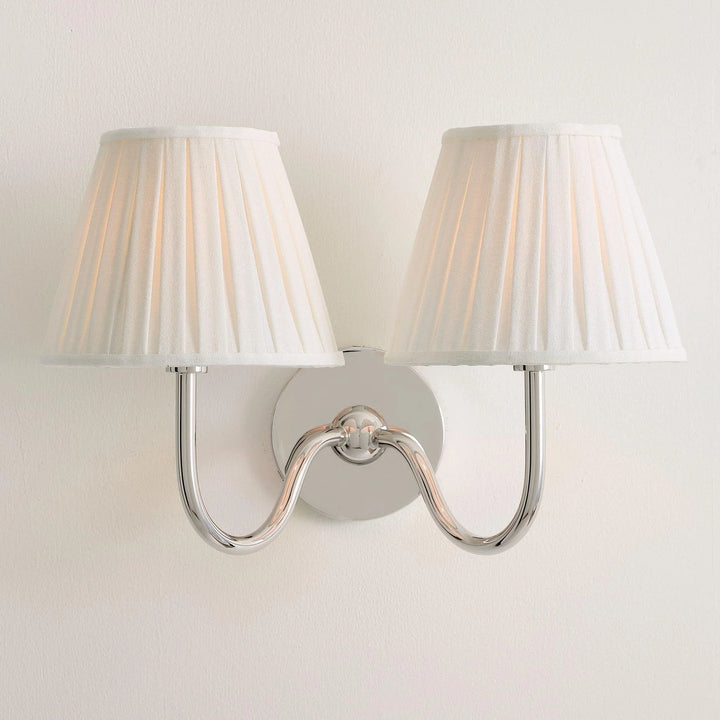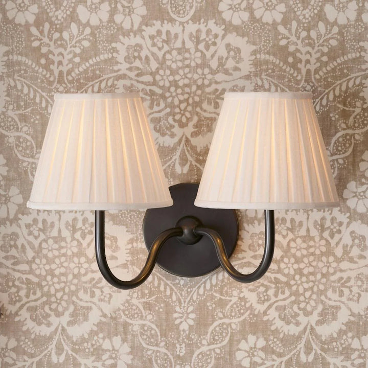 This wall sconce features a pleated fabric shade, creating a soft glow in any room. Perfect for bedrooms, hallways, or cozy reading nooks.