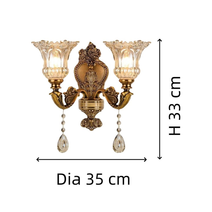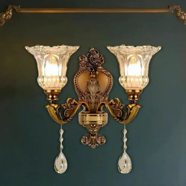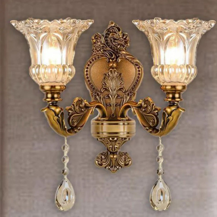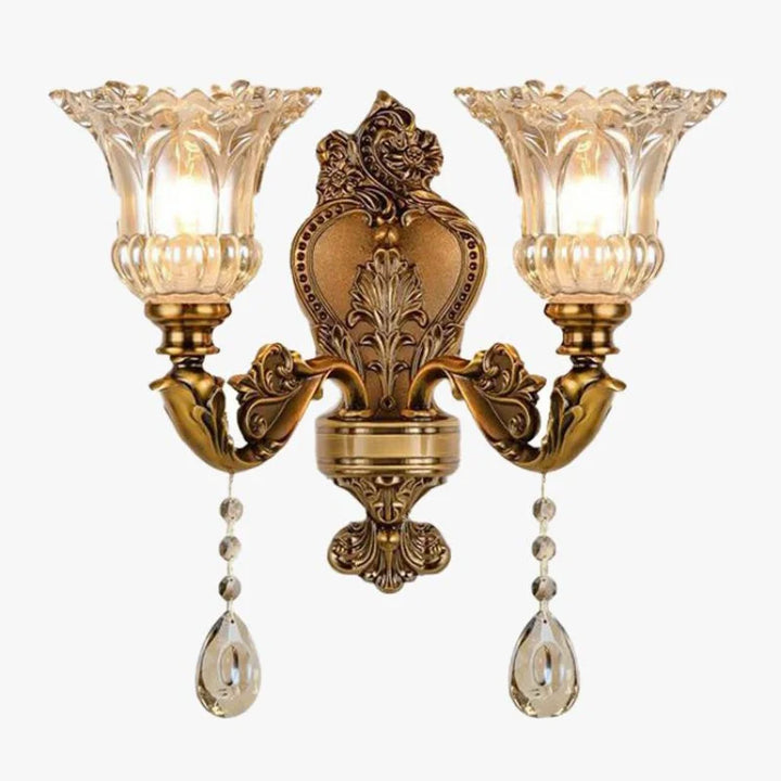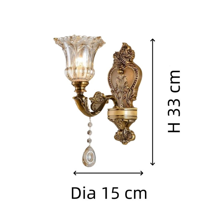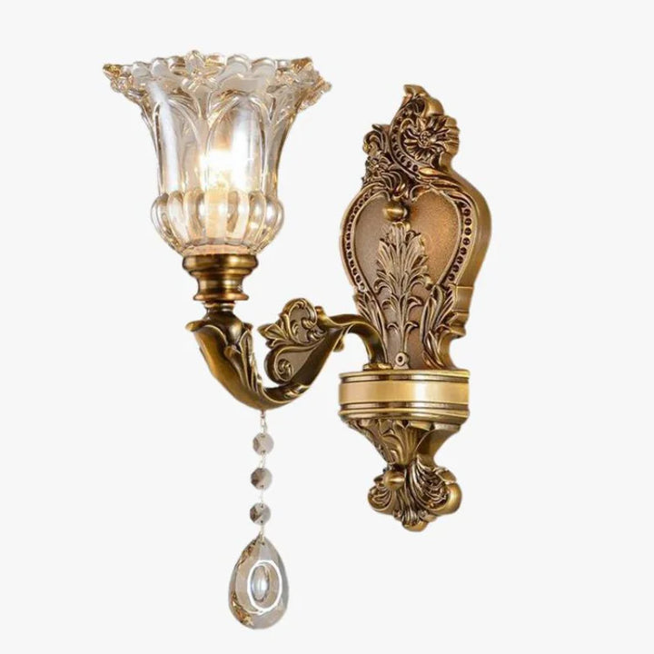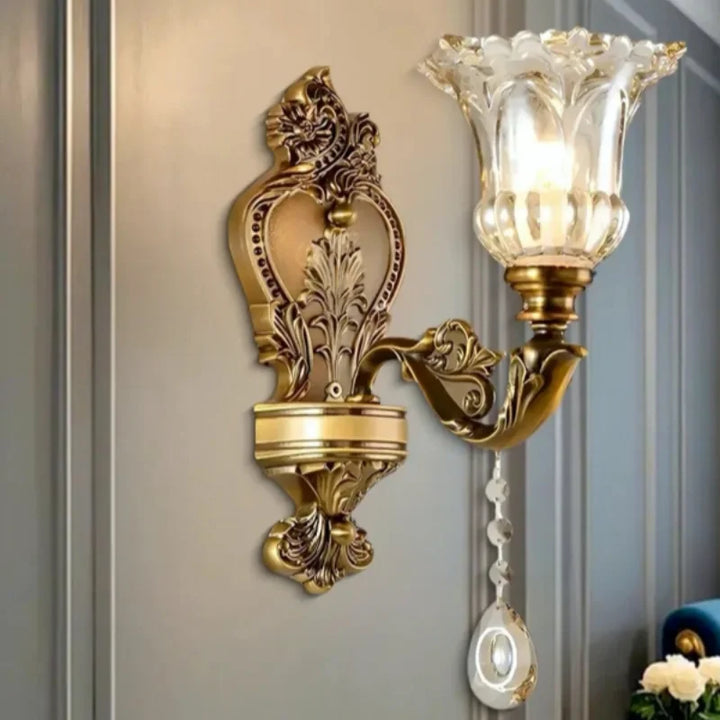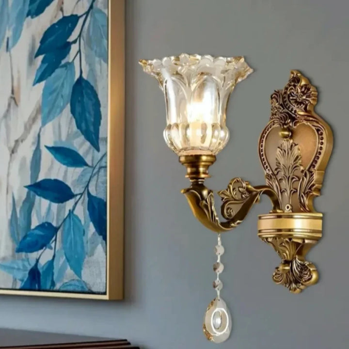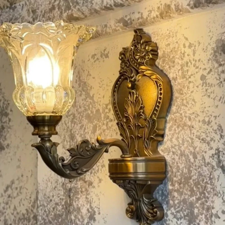This wall lamp combines intricate floral design with a brass finish, adding timeless elegance and warm ambient light to any space.