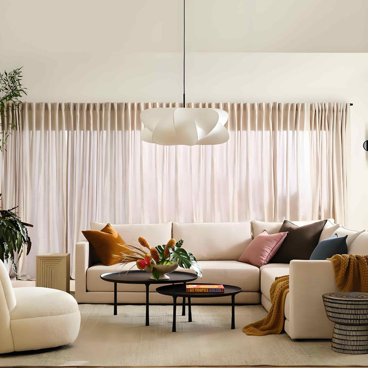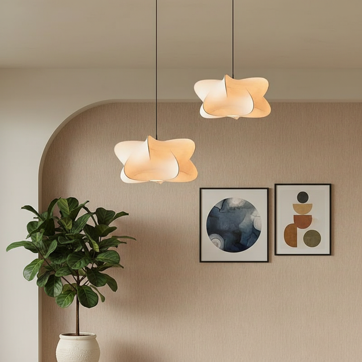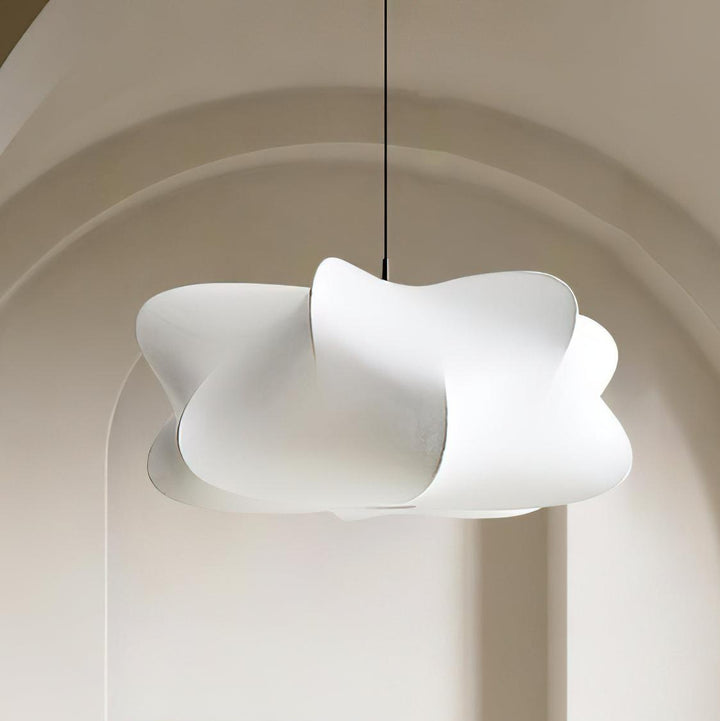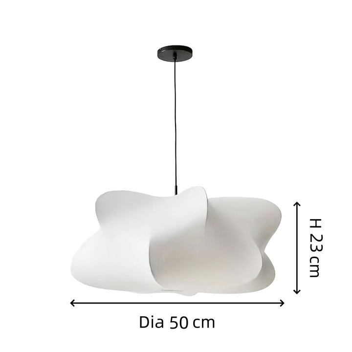 This Light features an elegant cocoon-inspired design, crafted with delicate polymer strands wrapped around a sturdy frame.